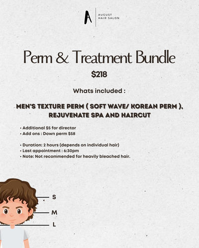 What's included : Men's Texture Perm, Rejuvenate Spa & Haircut
