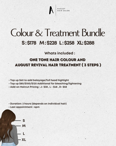 What's included : One Single Tone Hair Colour and August Revival Hair Treatment